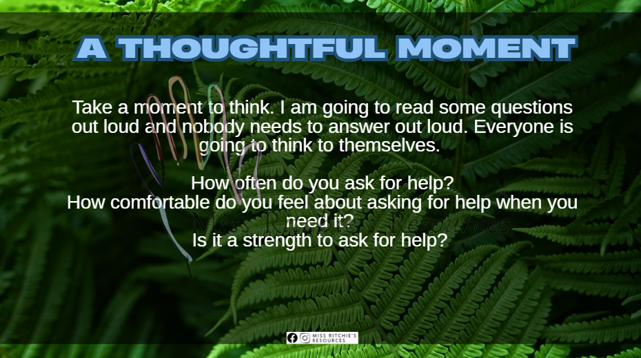 A valuable life skill is the ability to reach out and ask for help. In this slideshow, students will learn that it is a strength to ask for help. Students will have plenty of opportunities for deep discussion as well as plentiful opportunities to practice asking for help.