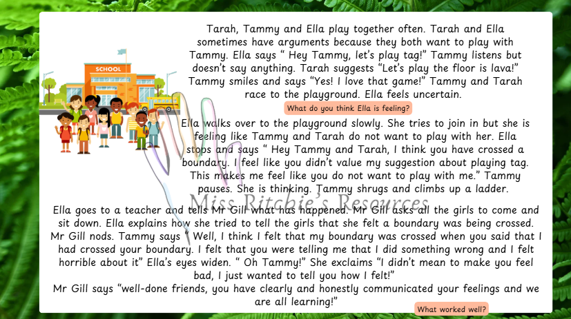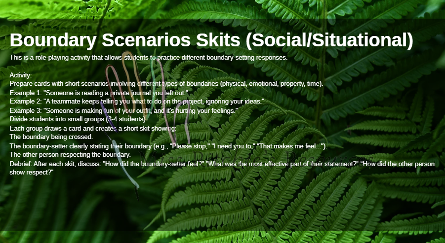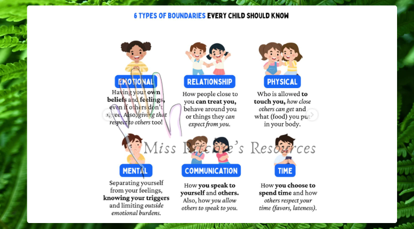 In this lesson, students will learn about their boundaries. There are many different types of boundaries. Students will learn how to respect others' boundaries and how to articulate what their own boundaries are. The worksheet is included.